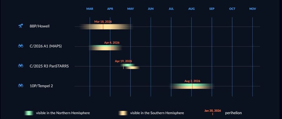 Cometas visíveis em 2026 (atualizado a março 2026)