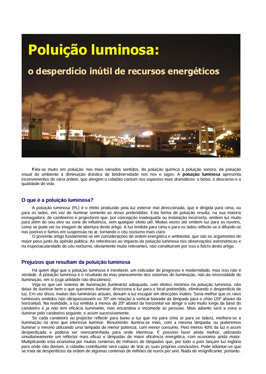 Poluição luminosa: o desperdício inútil de recursos energéticos – Guilherme de Almeida, Junho 2010