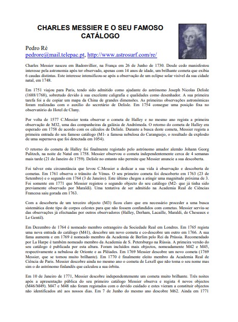 Charles Messier nasceu em Badonvillier, na França em 26 de Junho de 1730. Desde cedo manifestou interesse pela astronomia após ter observado, apenas com 14 anos de idade, um brilhante cometa que exibia 6 caudas distintas. Este interesse intensificou-se após a observação de um eclipse solar visível da sua cidade natal, em 1748.