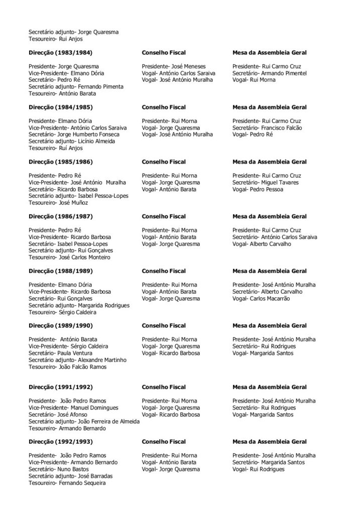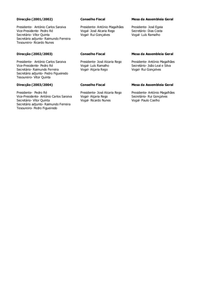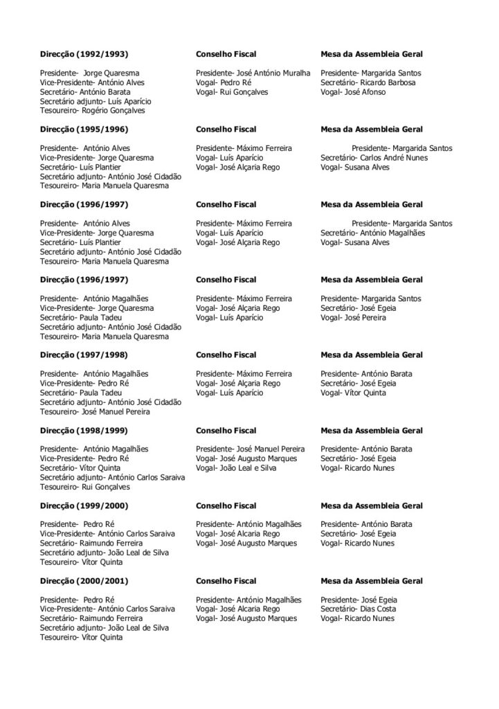 Corpos Sociais através dos tempos