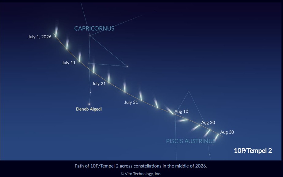 Início de julho e o final de agosto de 2026: 10P/Tempel 2